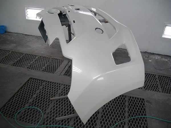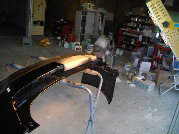 社外のFRPスポイラーをクリア塗装します。