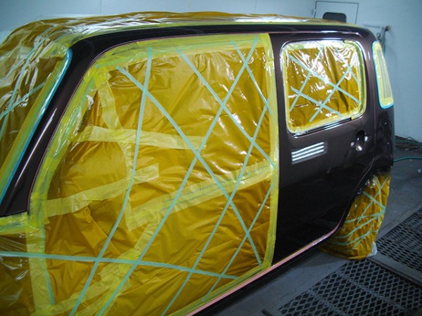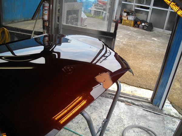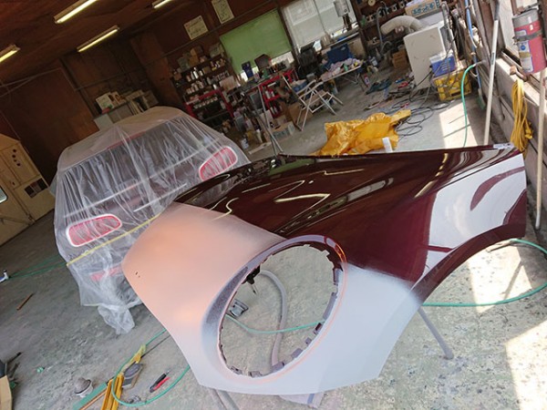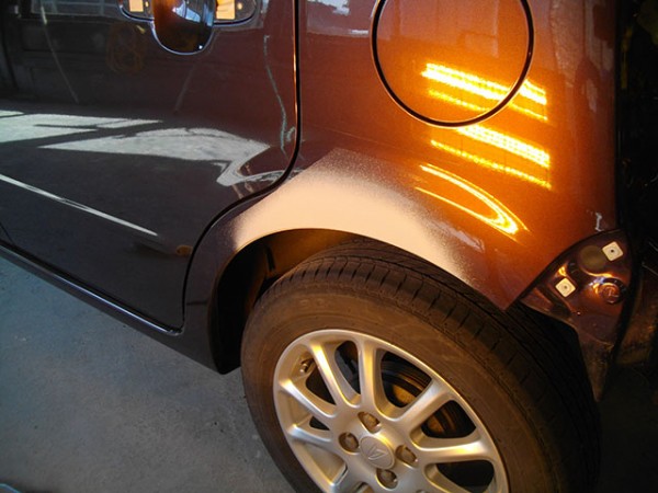 以前リアフェンダーの補修を行っていてすでにデータがありましたので調色はスムーズにいきました。
