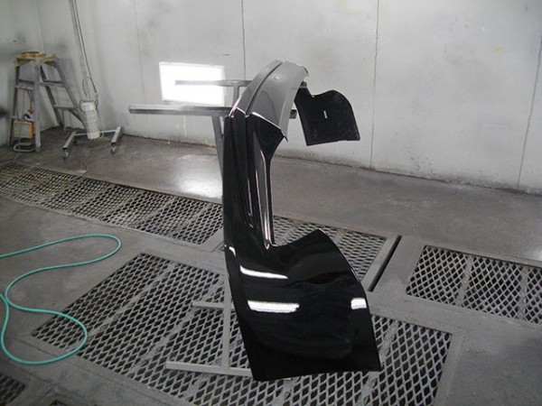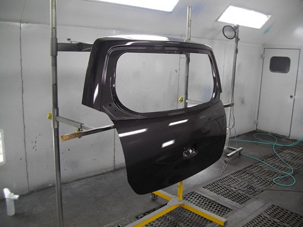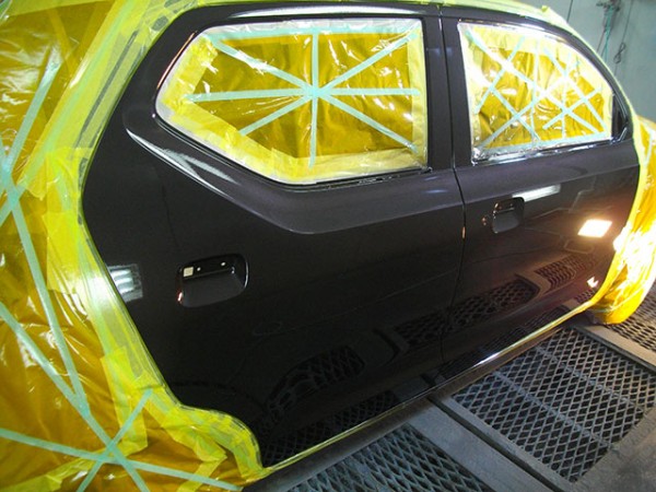 初めに裏側の塗装をします。車体に装着されているドアを確認するとクリアーのツヤが若干曇った感じでしたので3割程度の艶消しで塗装しました。
