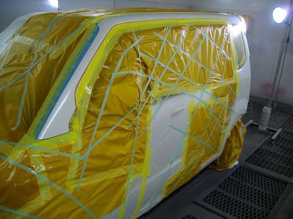 修理した場所を残して、他の部分はマスキング等で養生してから
