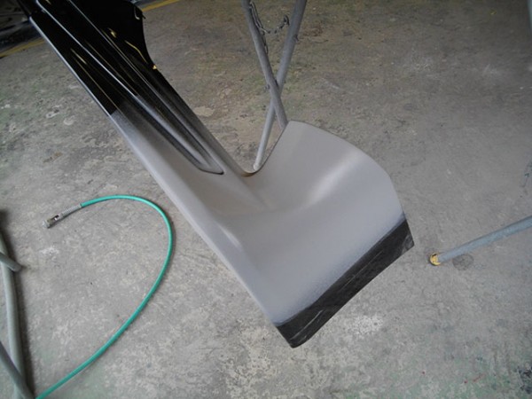 切断した場所に新品のステップを溶接した後に塗装していきます