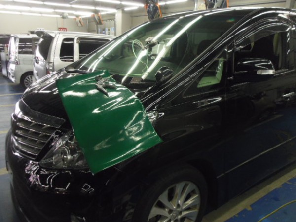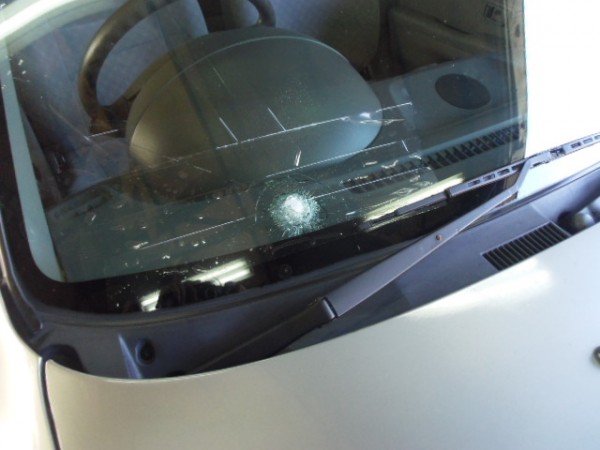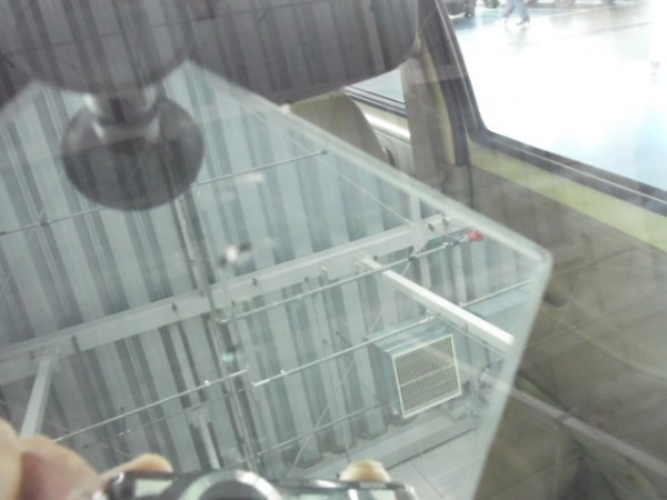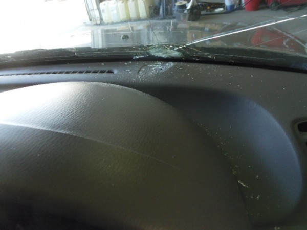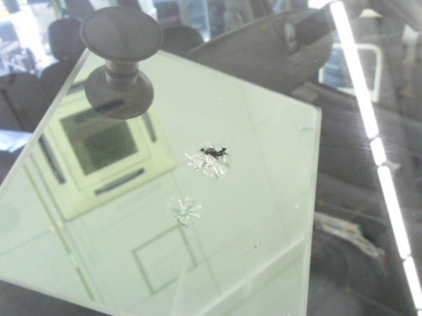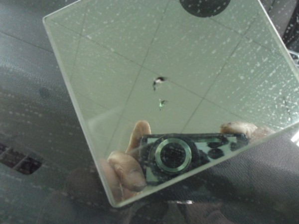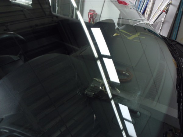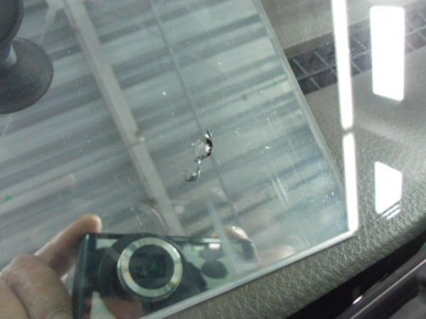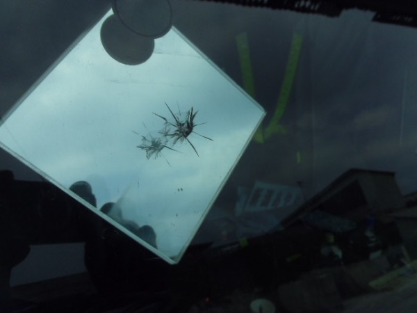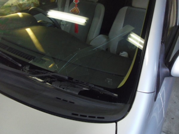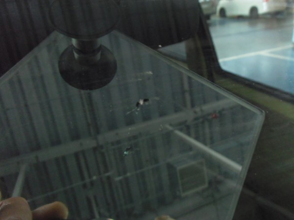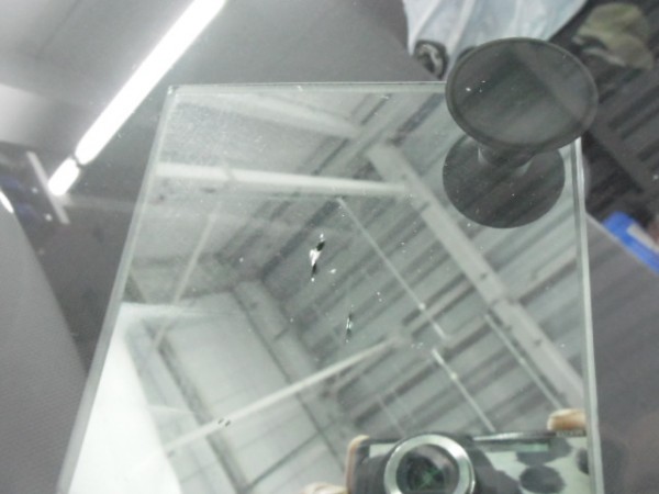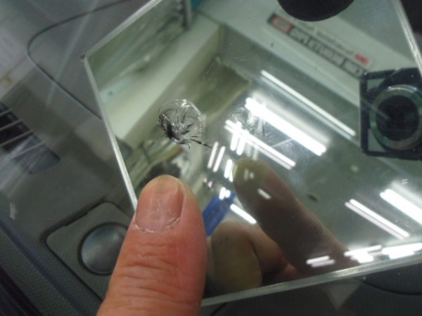 お客様に貸し出し中、高速道路で大きい石、いや、岩みたいな物が直撃し、この様に割れた