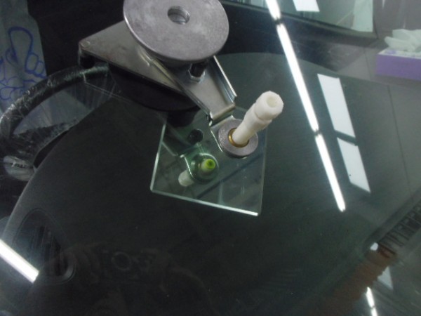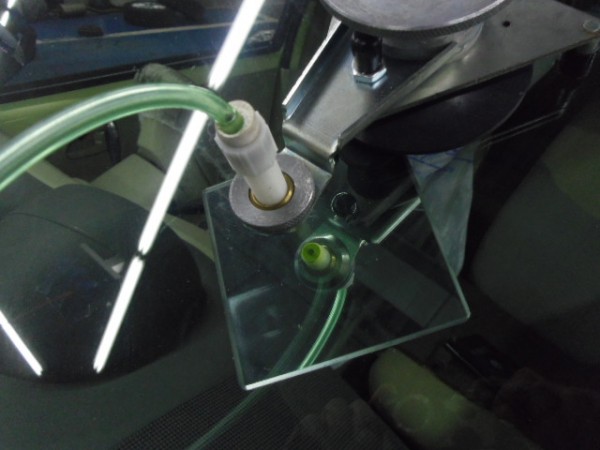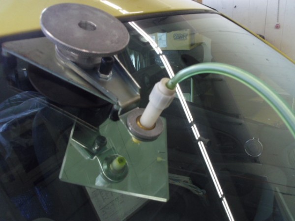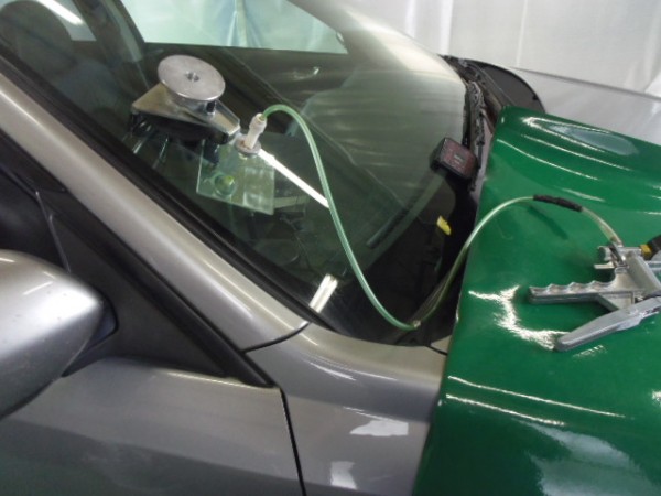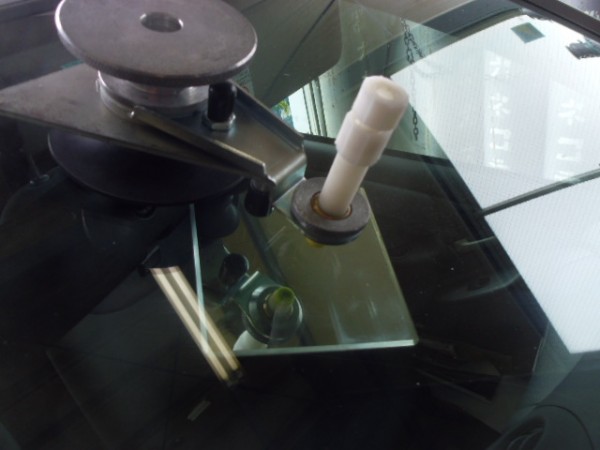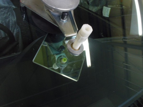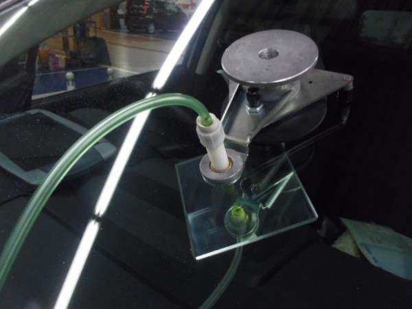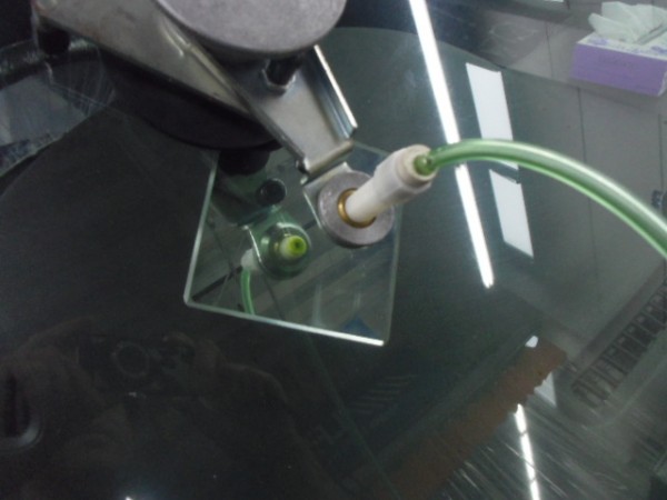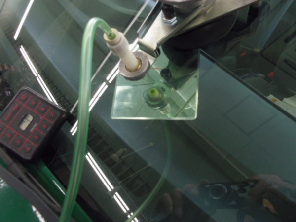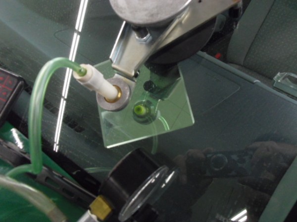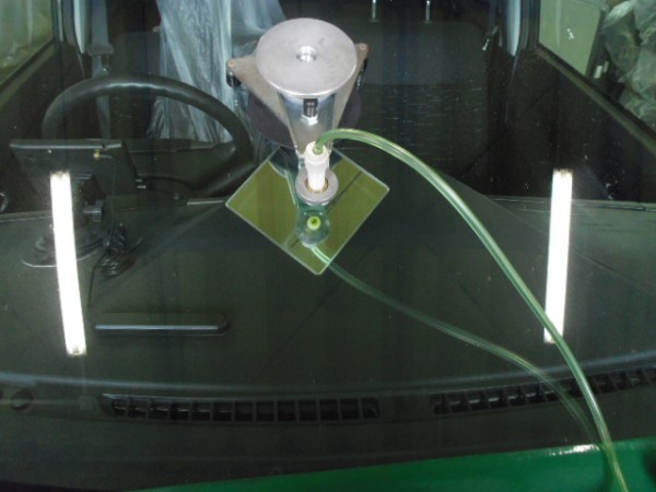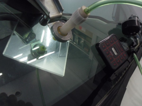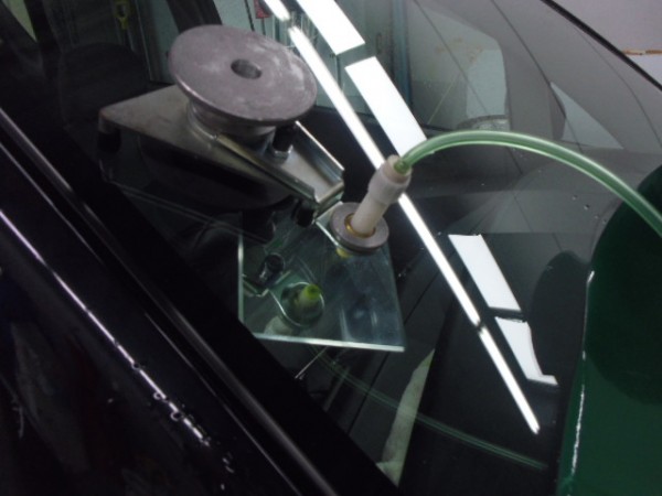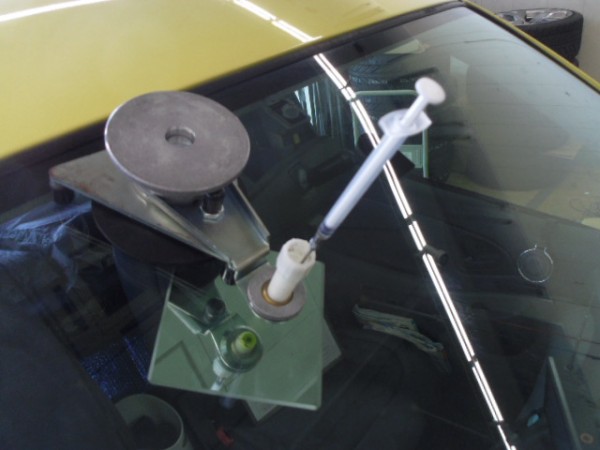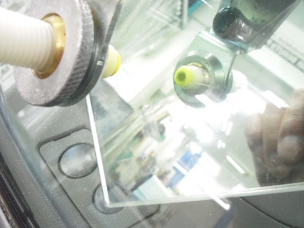 キズ内部のクリーニング後、ガラス用接着剤を注入して真空にしています
