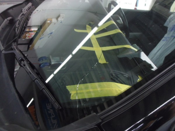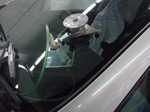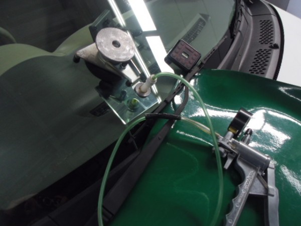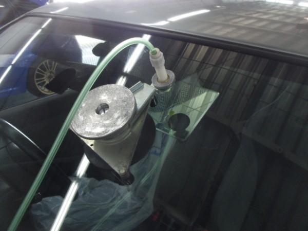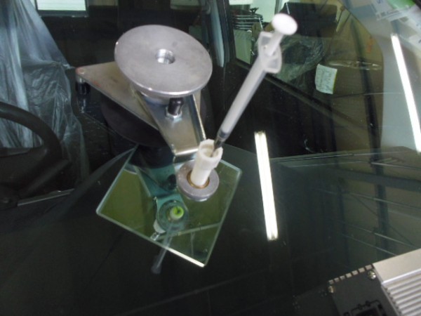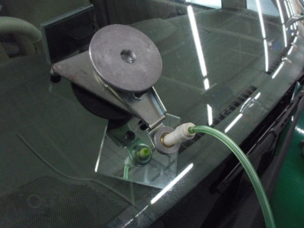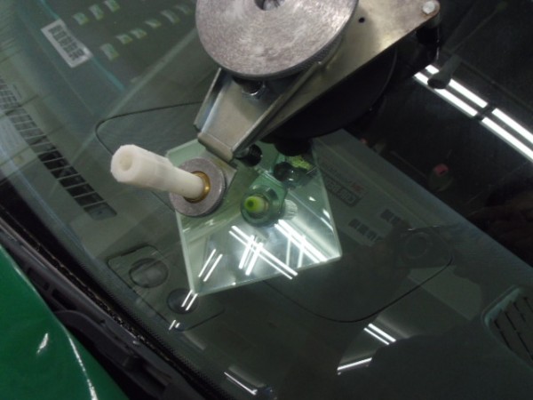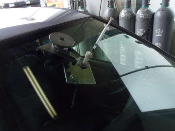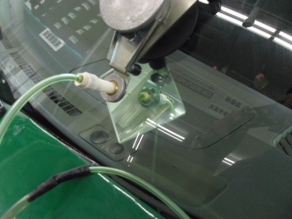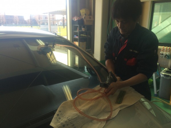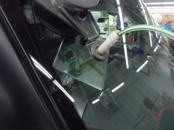 フロントガラスにヒビが出来てしまったと言う事でガラスリペア作業をします
