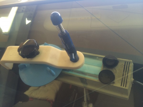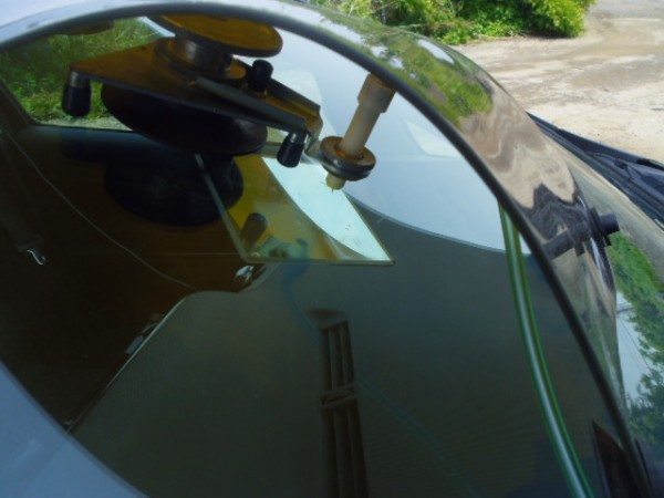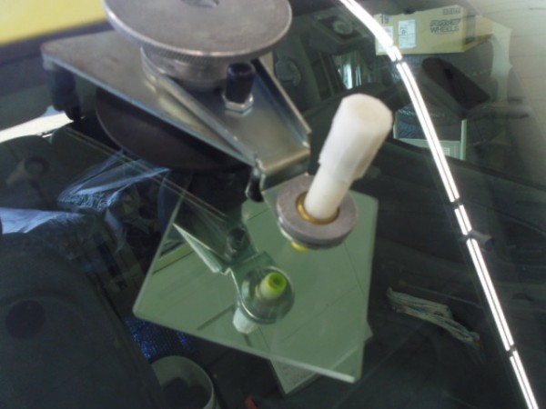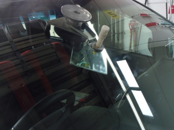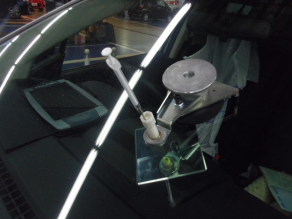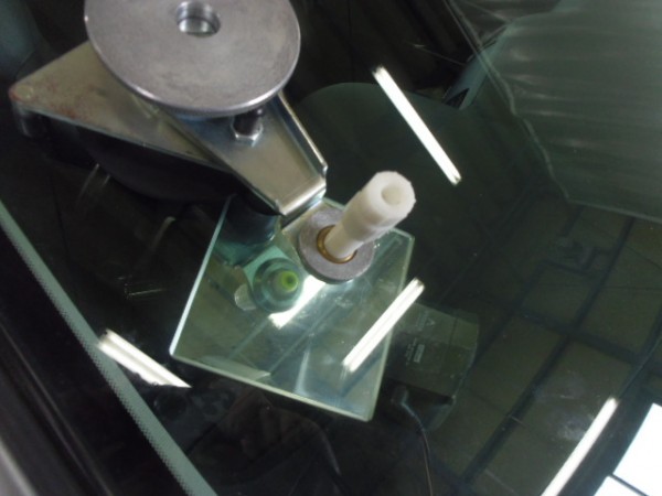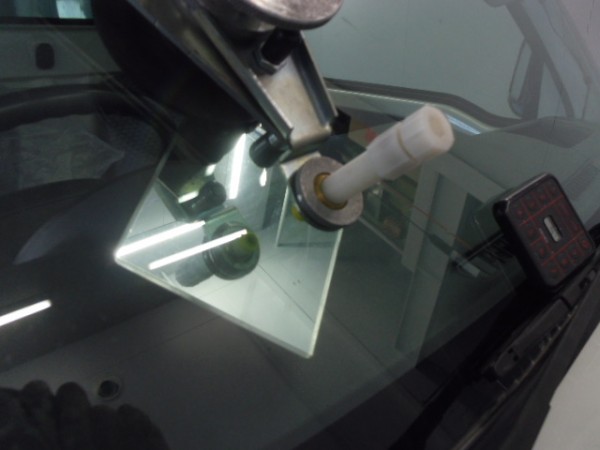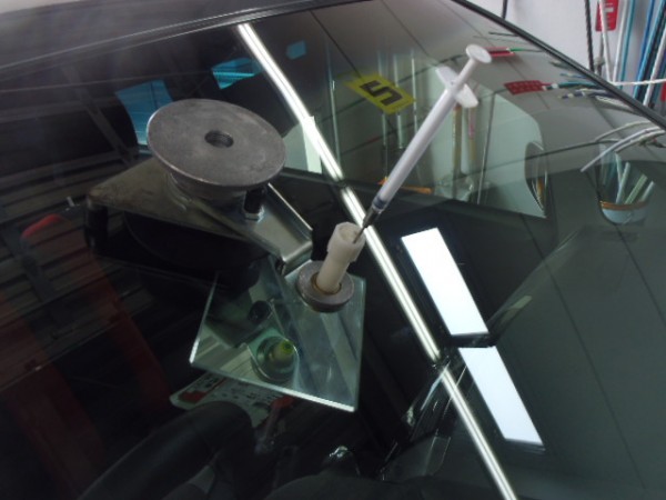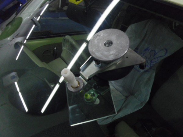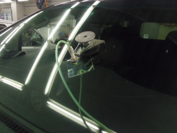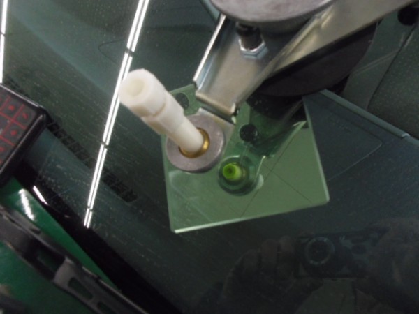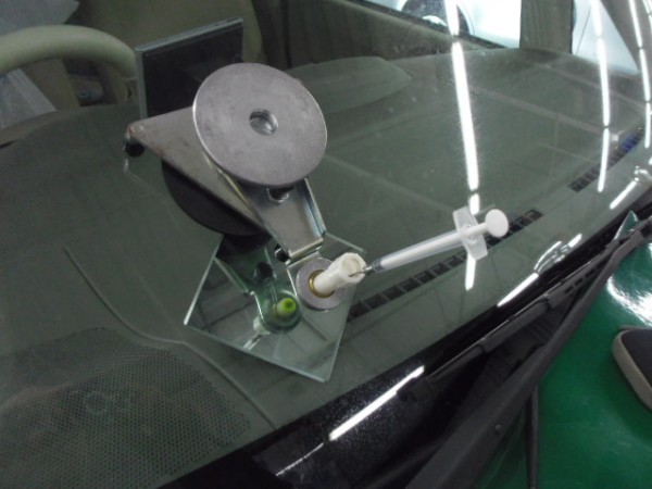 フロントガラスにヒビが出来てしまったと言う事でガラスリペア作業をします