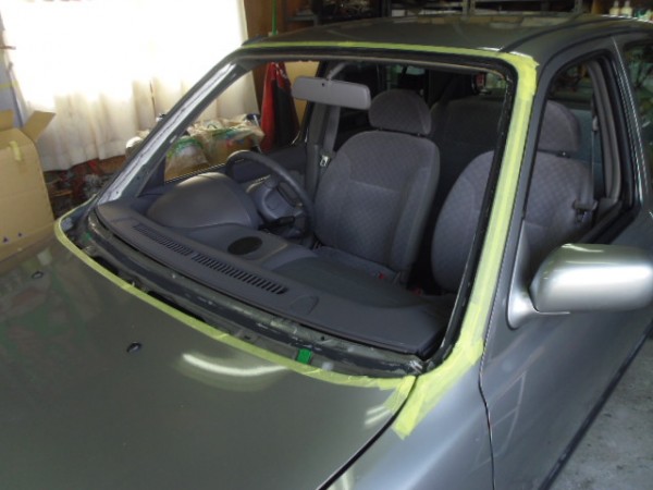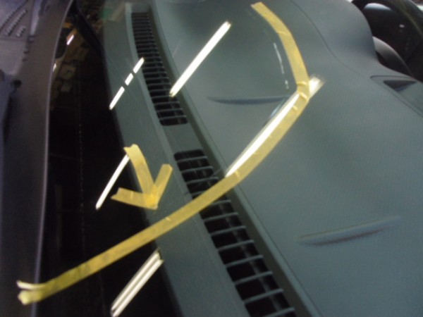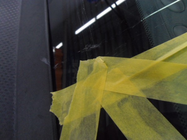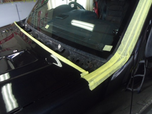 新品ガラスも乗せてモールもシッカリ固定できる様に納車までマスキングで止めておきます