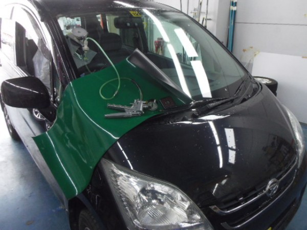 早朝1台目は働く車、軽トラのヒビ割れ修理です