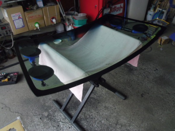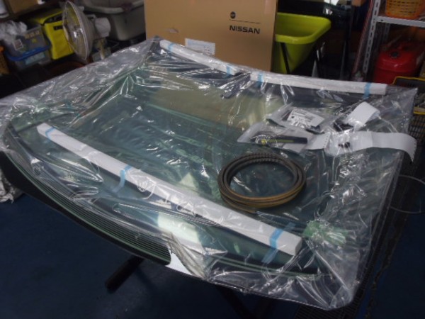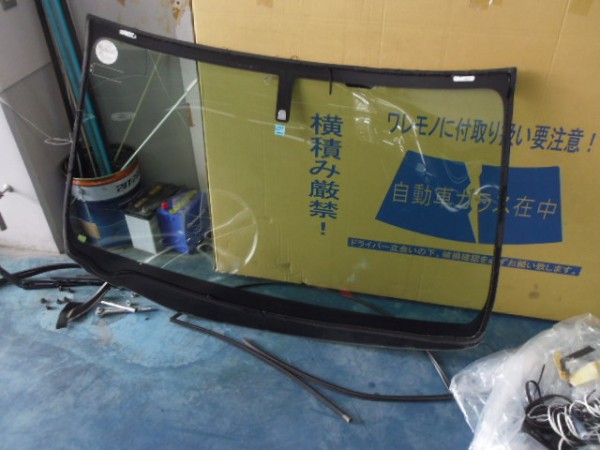 新品ガラスを乗せ、ワイパー類を組み立てて完成です