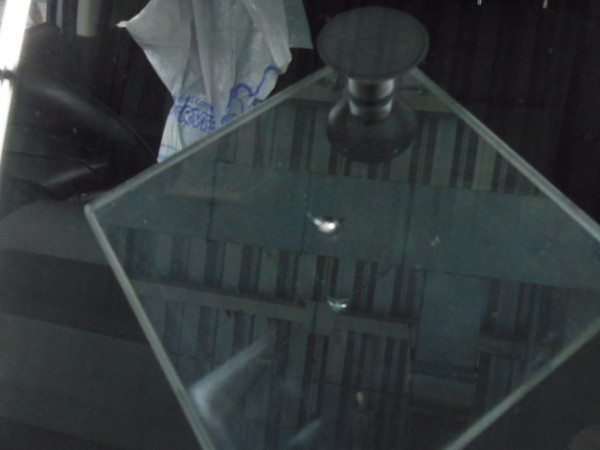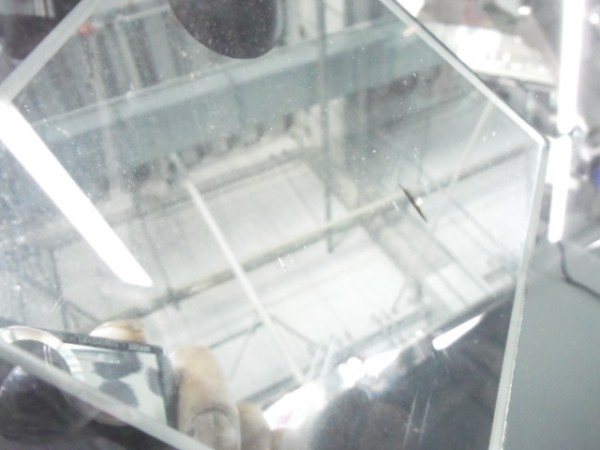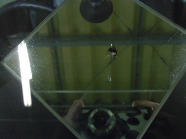 真ん中下から40センチくらいの位置にブルズアイ状のヒビが入ってます