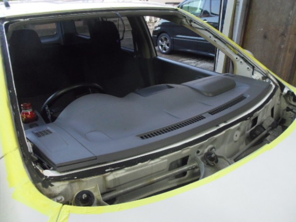 外したガラスは最後に車検ステッカーを剥がして再利用するのでこのまま置いておきます