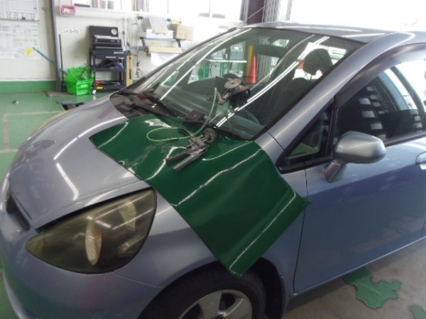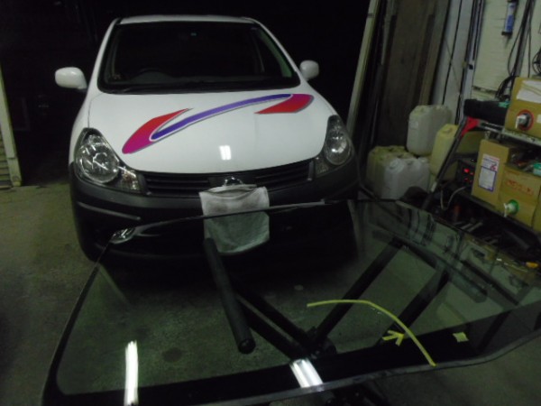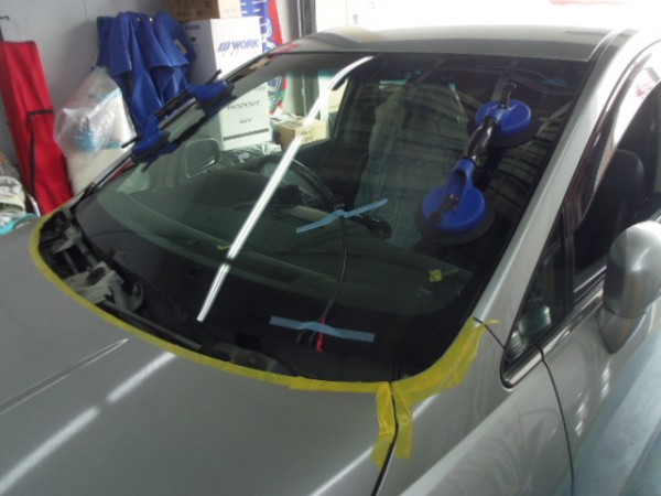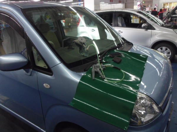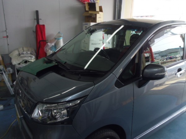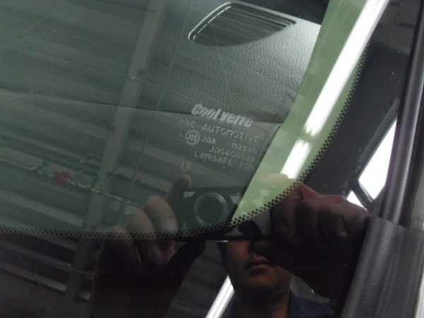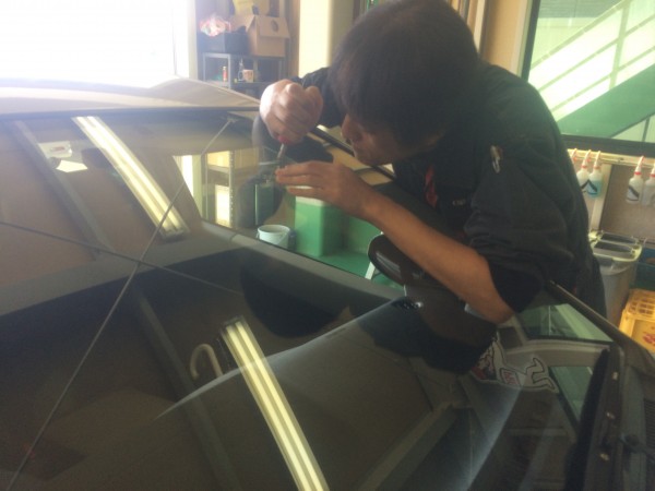 3月末に車輌保険を使い、ご予約頂いたお客様で、飛び石シーズンでもあり純正ガラスが4月末入庫予定という事で1番早く交換可能なアサヒガラスのクールベールを使い交換する事になりました