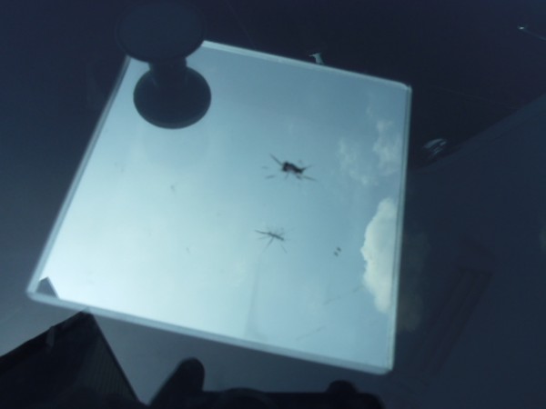 助手席下20センチくらいの位置にブルズアイ状のヒビ割れが
