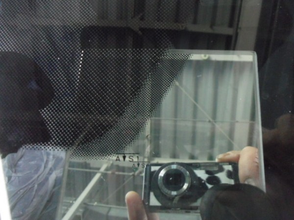 オリジナルガラスではセラミックドットが幅広くプリントされていて日差しを軽減する処理がされてるんですよ