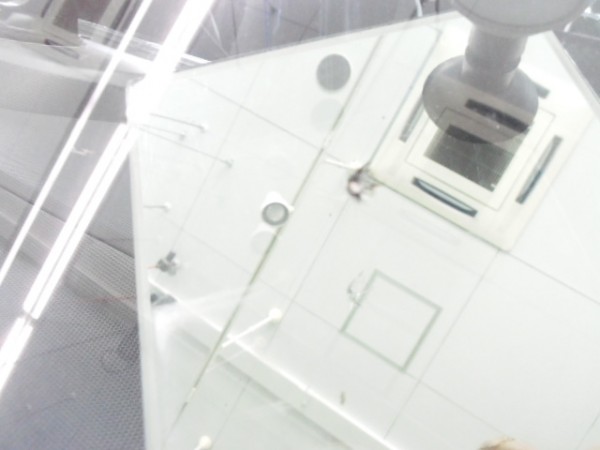 中央の上から15センチくらいの位置なので腕などをガラスにつかない様に作業します