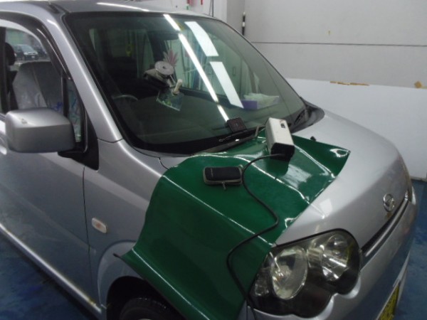 キズ内部のクリーニング後、専用接着剤を注入して真空引きにしています
