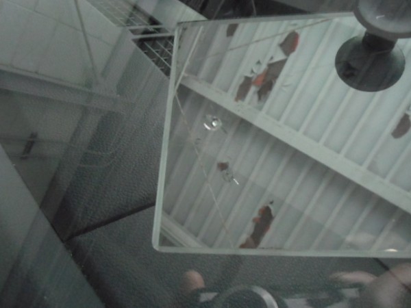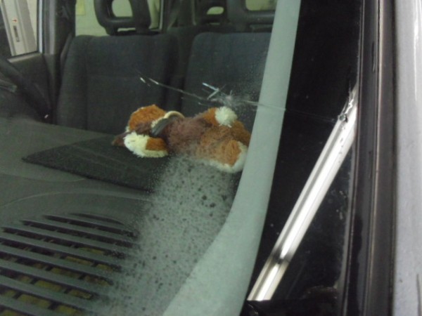 車内もご覧の様に、飛び散ったガラスが散乱して危ない