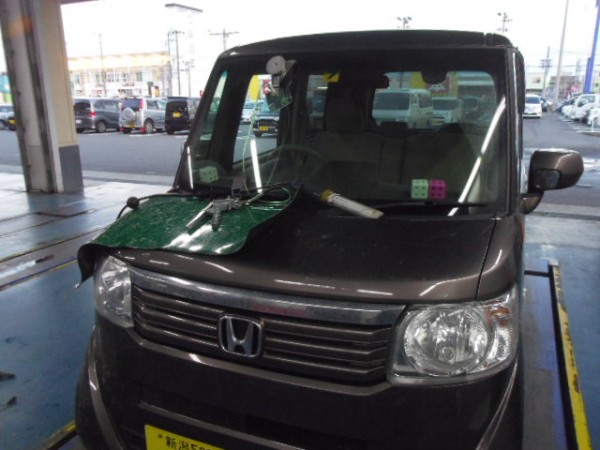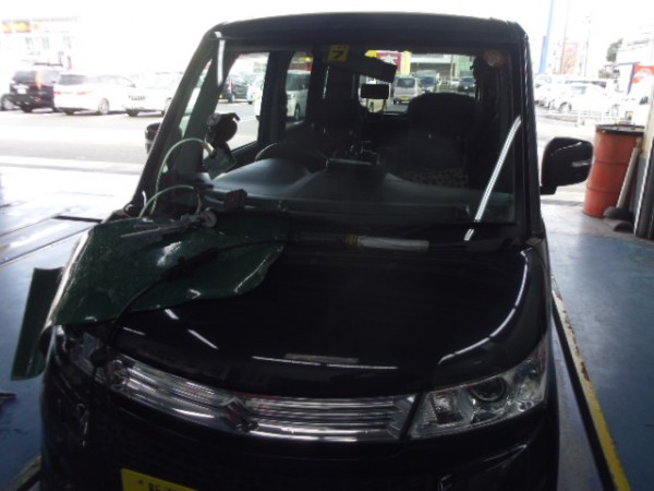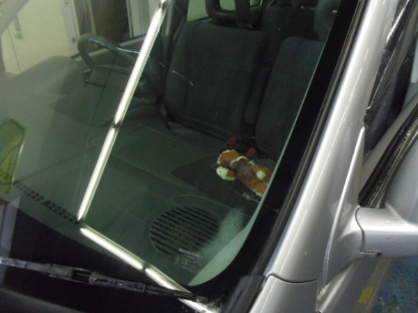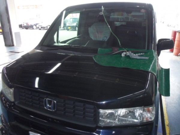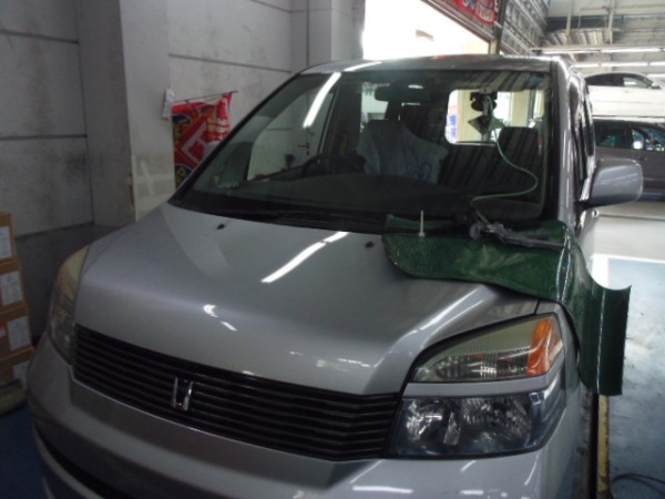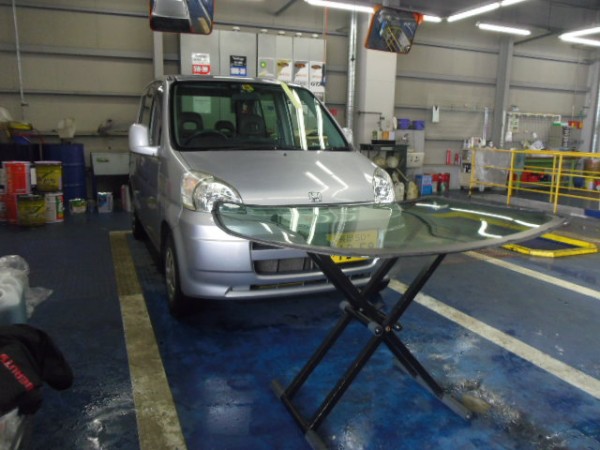 車検でご入庫のモビリオ、ヒビが入ってました
