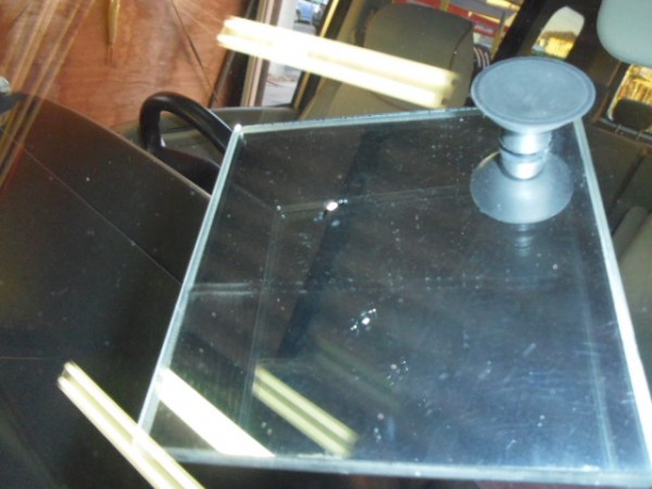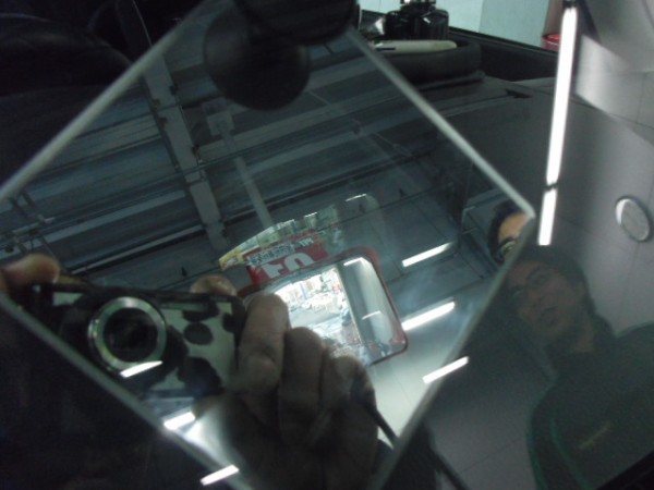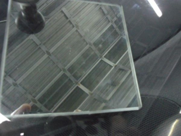 後は新しいガラスに接着剤を付けガラスをはめ込んでいきます