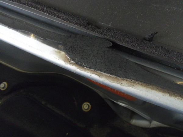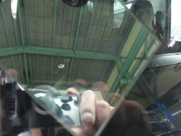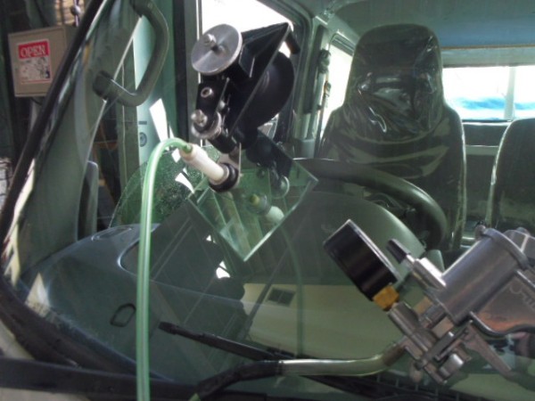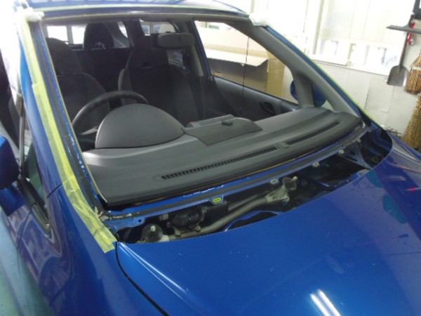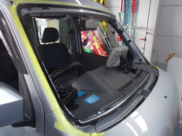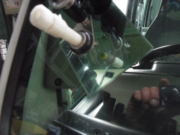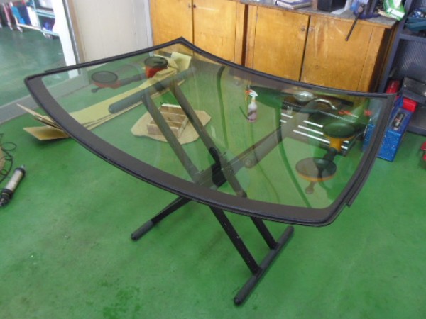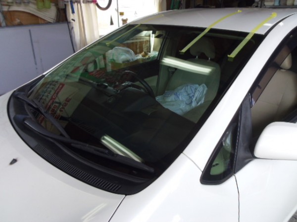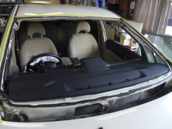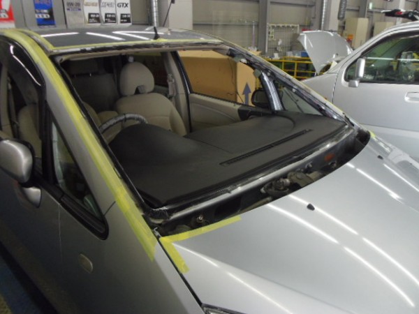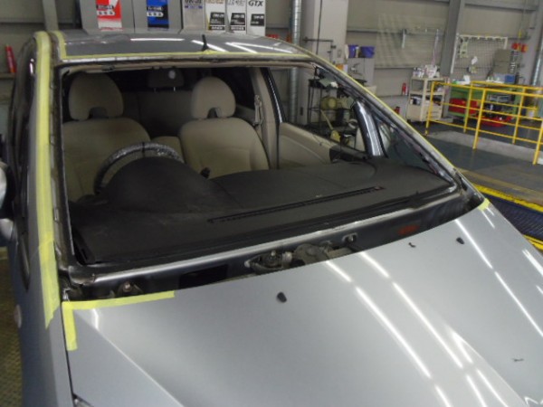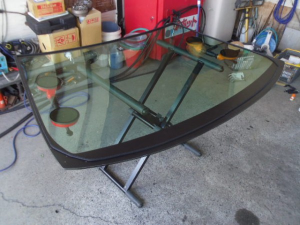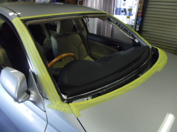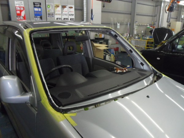 ヒビのはいったフロントガラスをはずすのですが接着剤が堅くて外すのに苦労しました