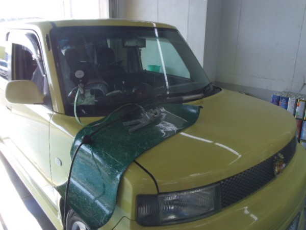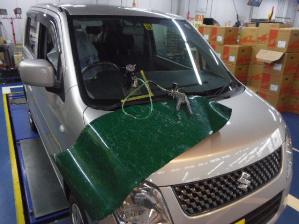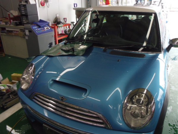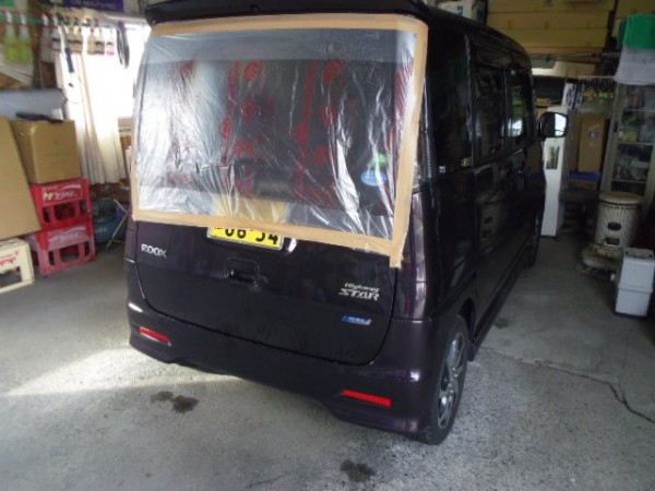 ビニールを貼られた状態での入庫でこのままでは乗れないので即、代車をお貸ししてお預かりさせて頂きました