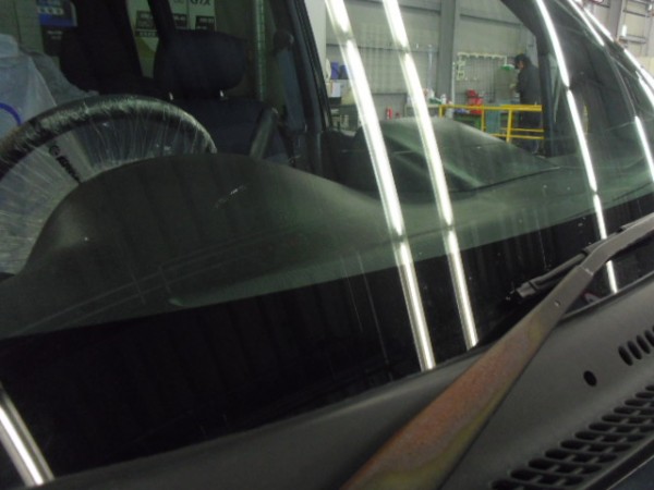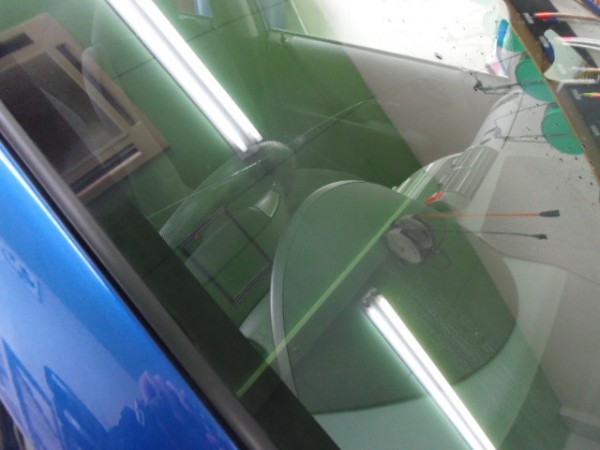 助手席真ん中くらいで縦方向に一文字にヒビが入ってます