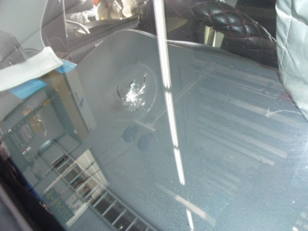 こちらも飛び石により、ひび割れちゃいました