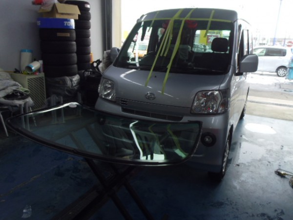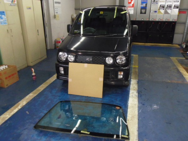 レインセンサー付きでしたので、純正ガラスに交換です。