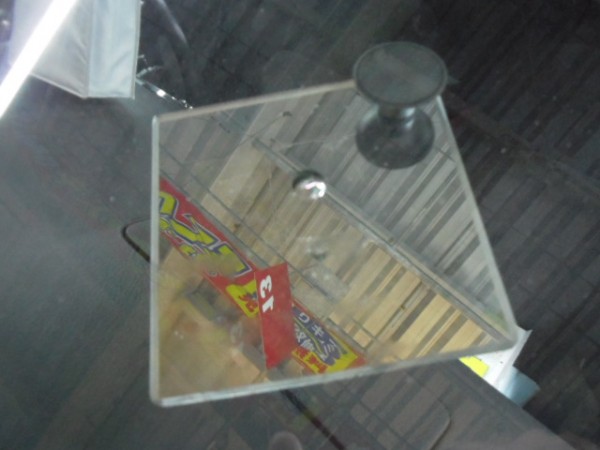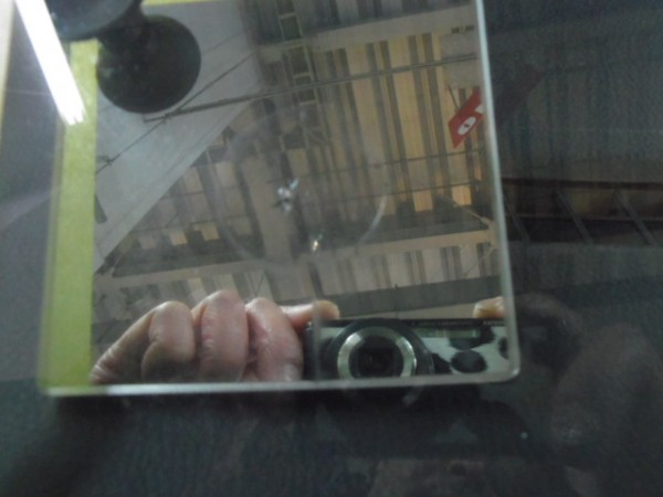 持ち主が心配そうに見てまして、ガラスに写り込んでます