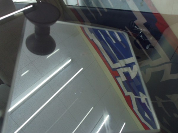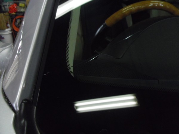 このお車のガラスはゴムモールを後から入れるのではなく、ガラスにASSYで着いていてガラスの淵が見えるタイプ