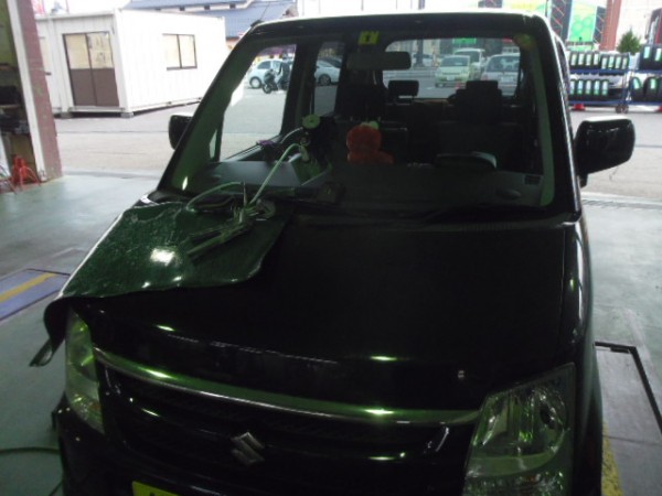 高速道路走行中、飛石で割れちゃいました