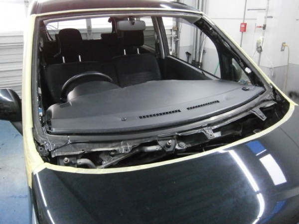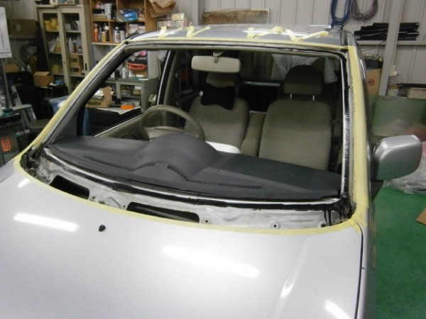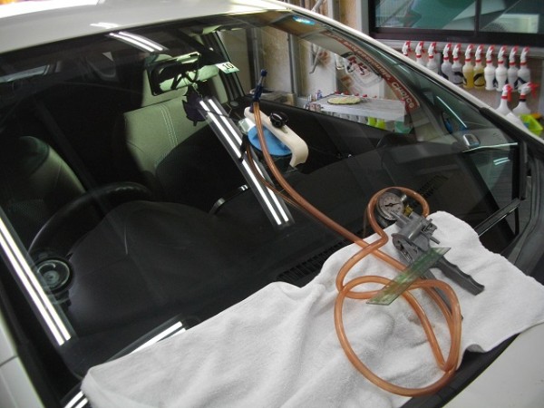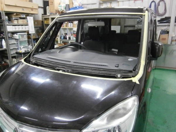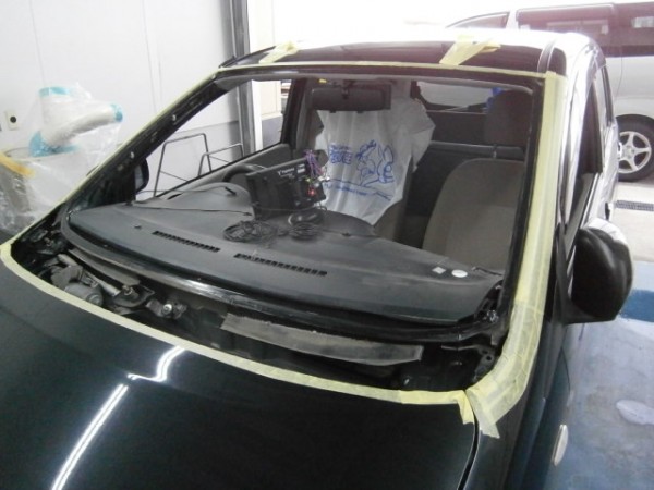 フロントガラスの交換作業をします
