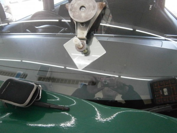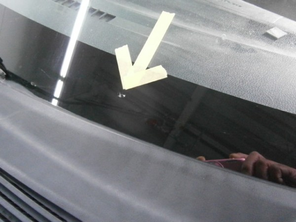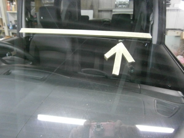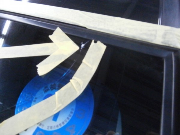 運転席上から10㌢、端から10㌢の位置に修理されてるキズがあり、ちょっと伸び始めて来た感じのヒビ