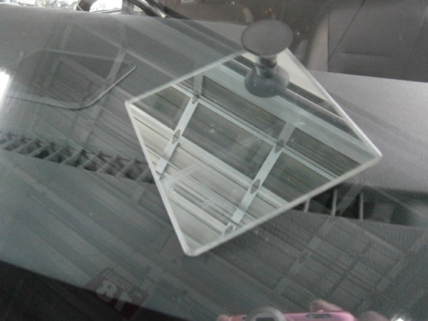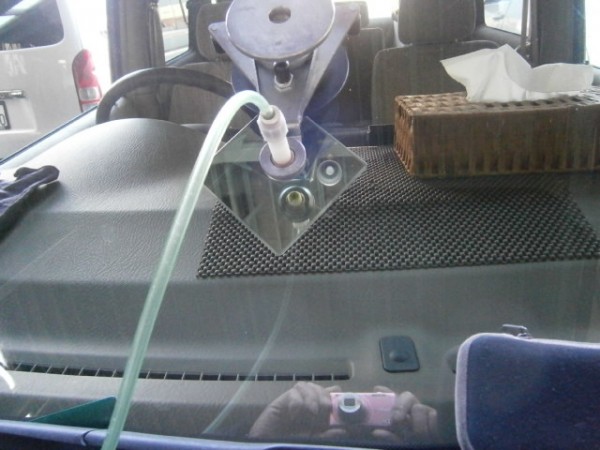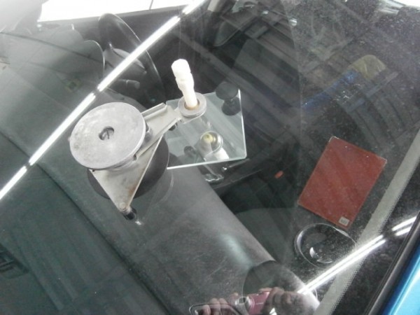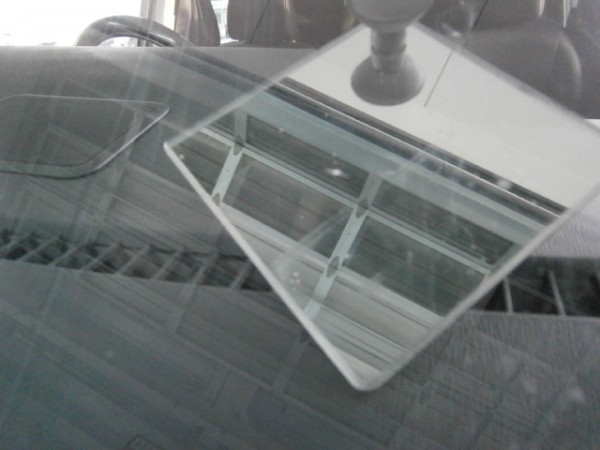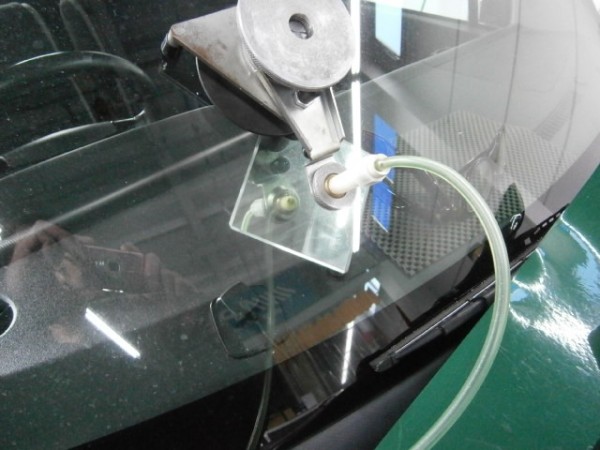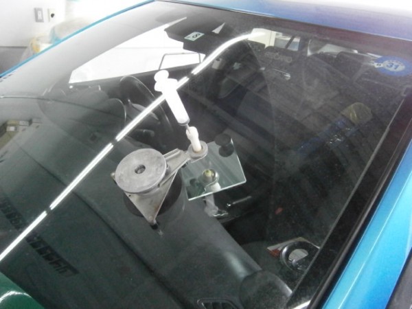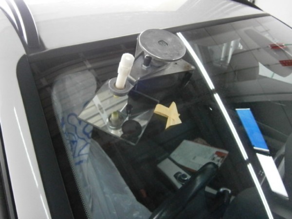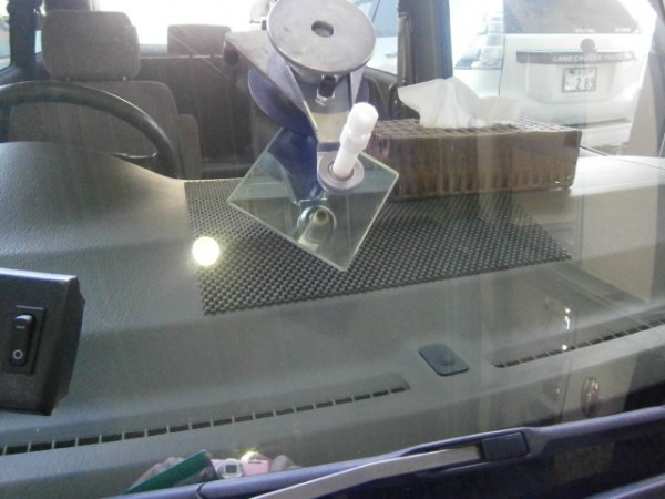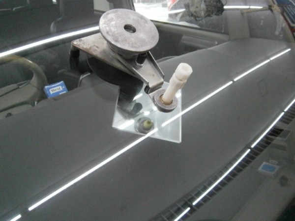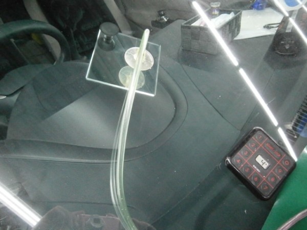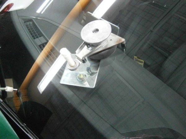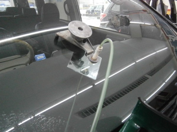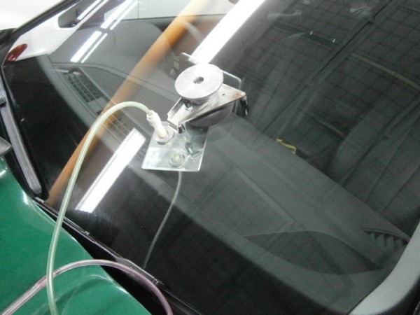 先にアンテナをガラスに貼ってから車体に乗せます