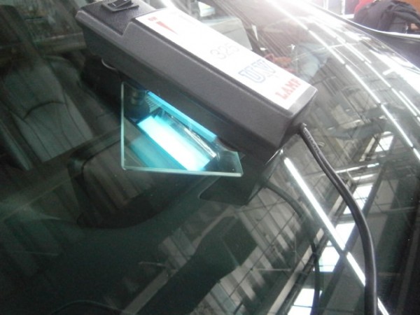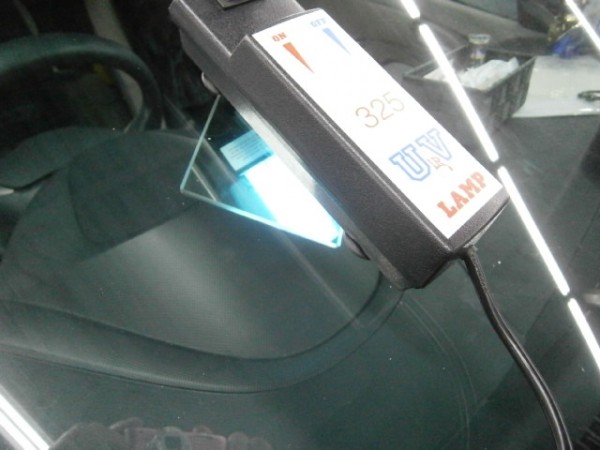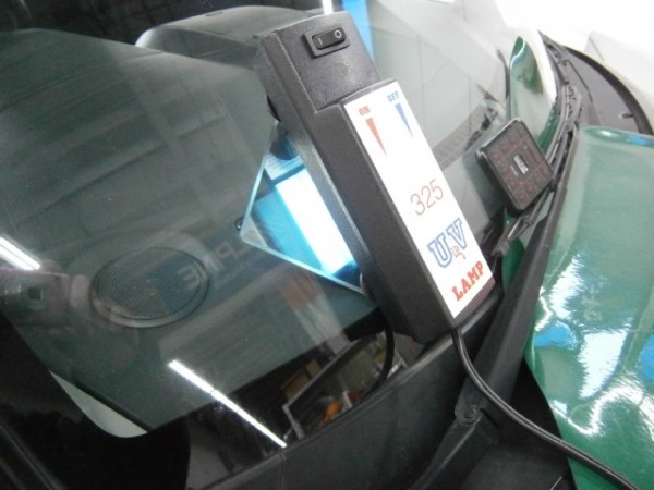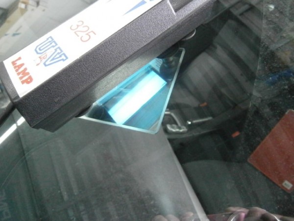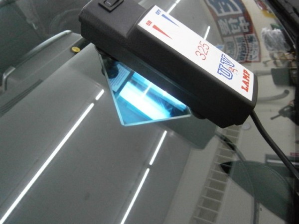 無事にキズ内部に浸透してUVライトで硬化させます