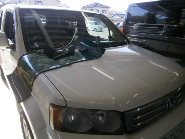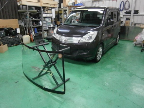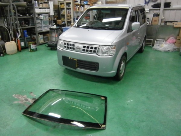 車輌保険を使って新品交換されるので純正ガラスに入替えます