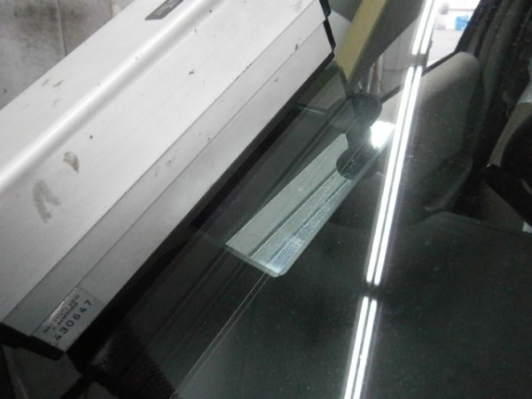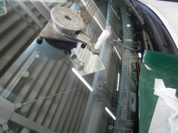 ボディーとガラスの隙間にL字カッターが入らない程狭いので全て専用ワイヤーで手作業