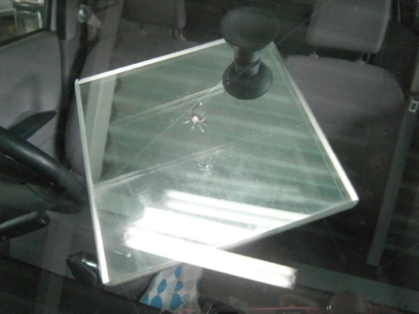 飛び込みのガラス修理です