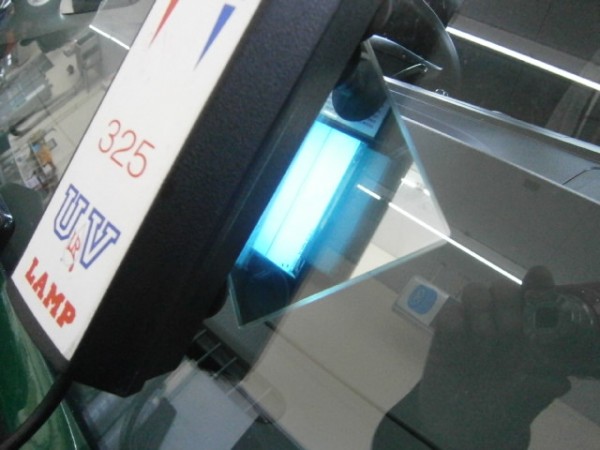 無事、浸透したのでUVライトで硬化開始