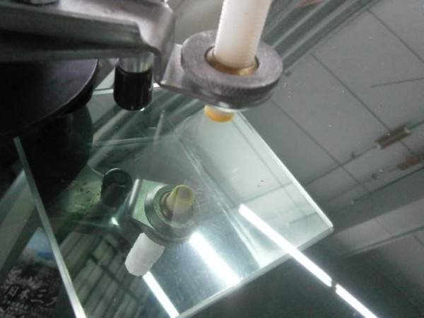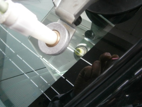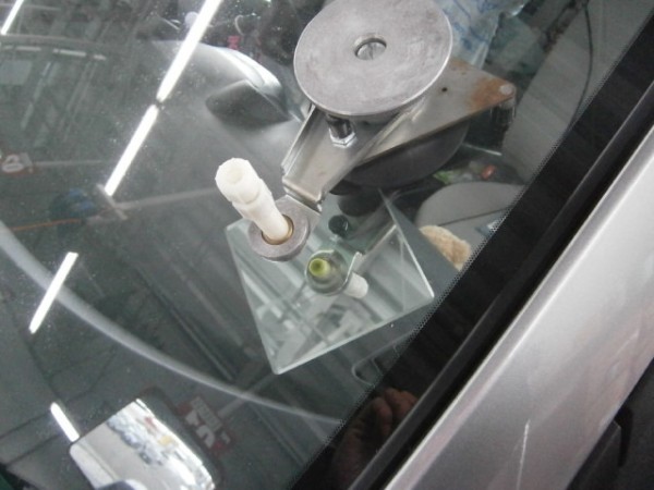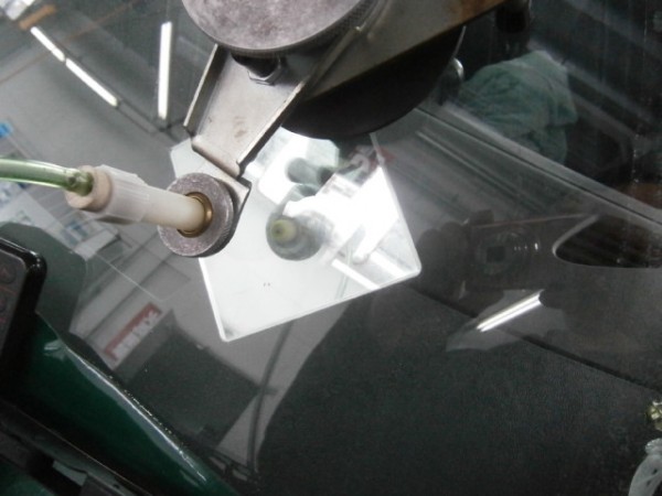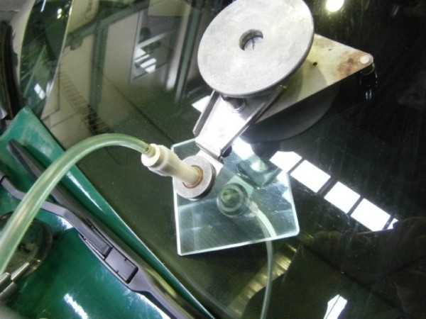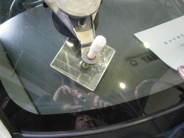 ガラス専用接着剤(レジン)もゆっくり加圧して行きます