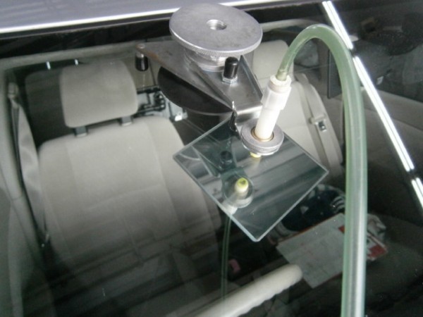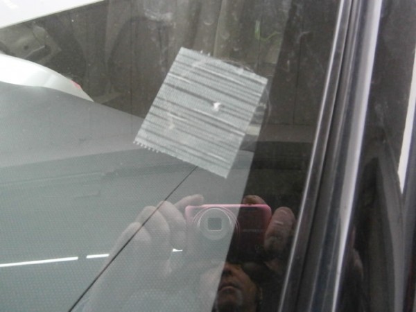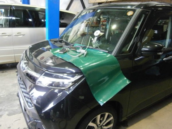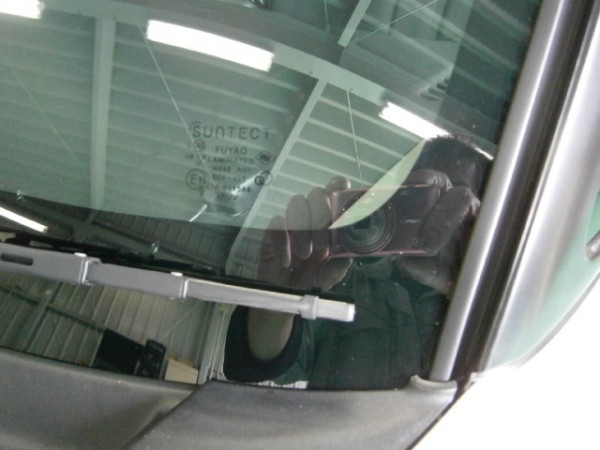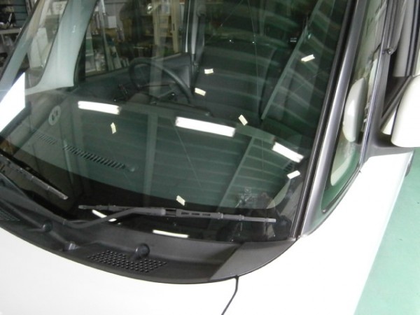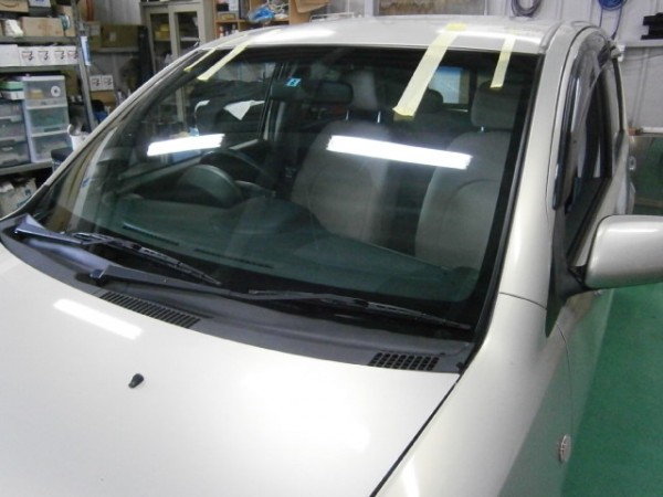 鉄粉落ししたタント、フロントガラスにも鉄粉が刺さって表面に小キズが多い状態
