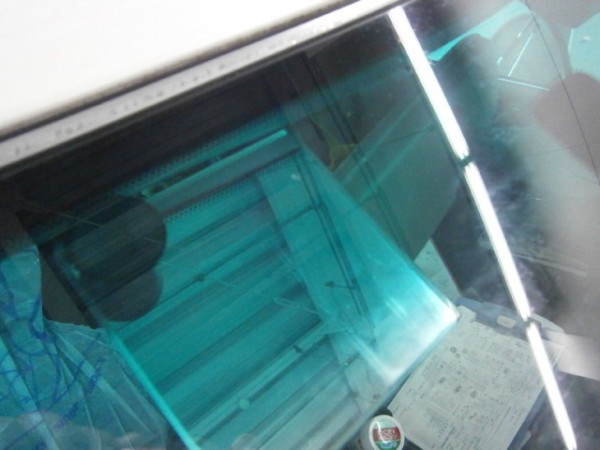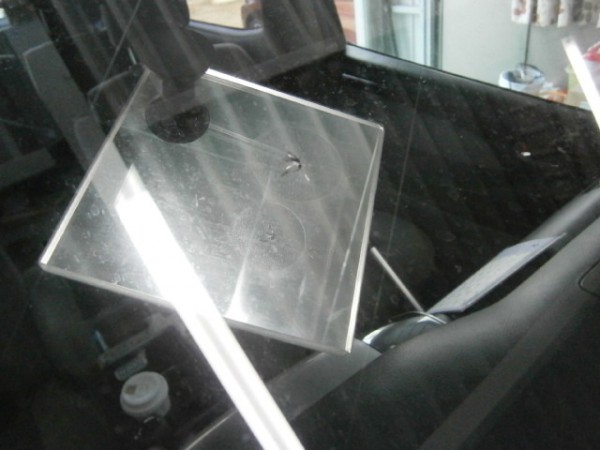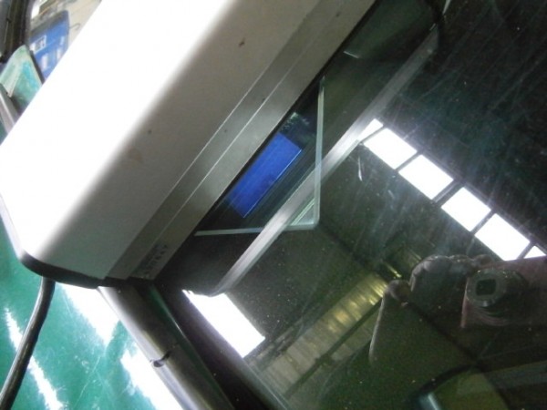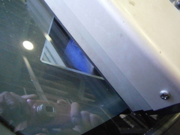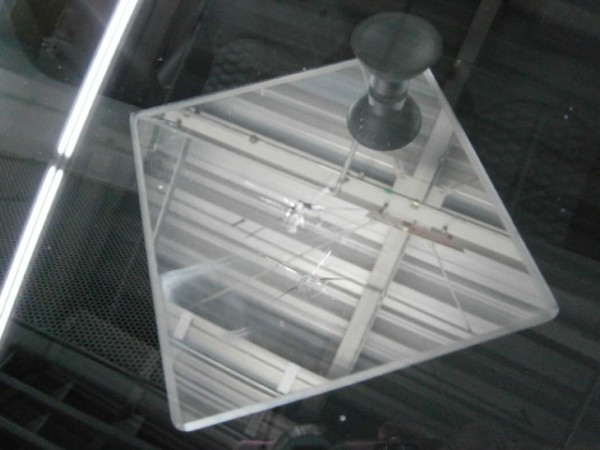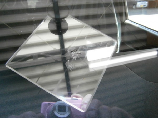 奥が外したガラス、台に乗ってるのが新品ガラス