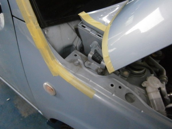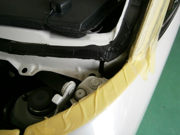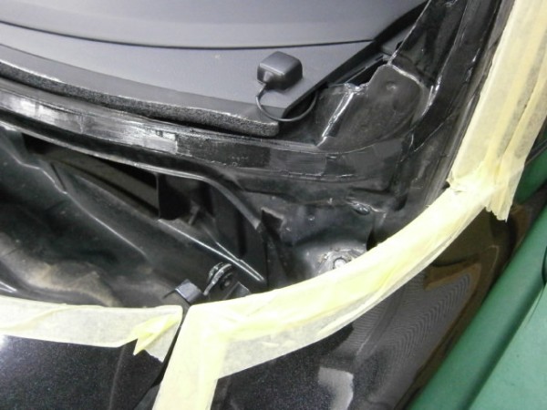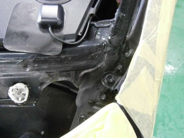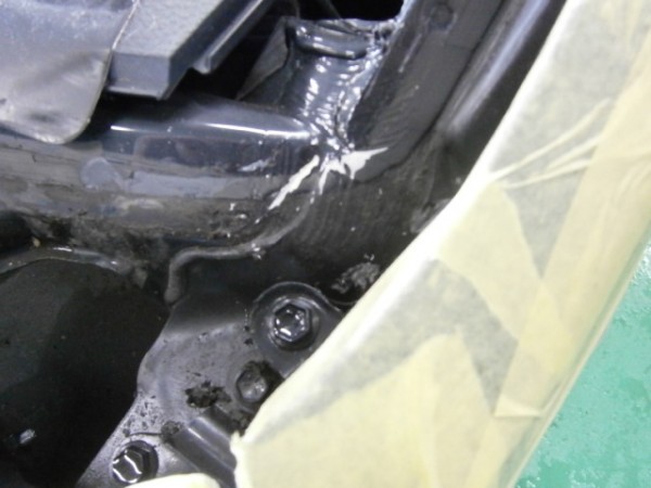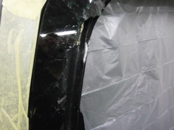 石の当たった打点の表面が、貝殻状にかけていたので大きめに足付けして表面処理をしてるので傷口が目立ってしまう