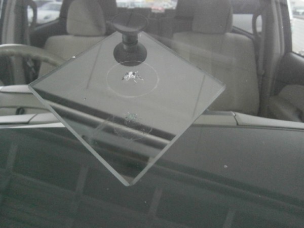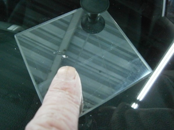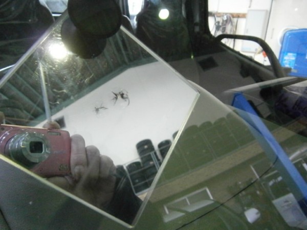 石が当たった所が分かりませんが、助手席側に亀裂が入ってます