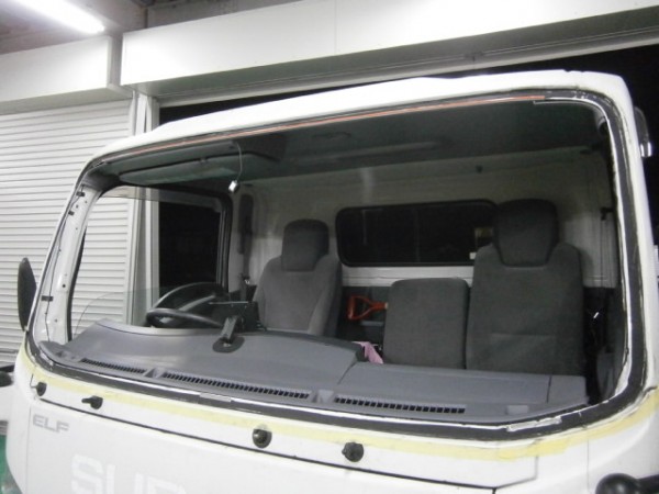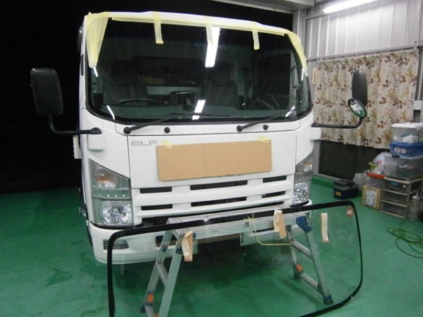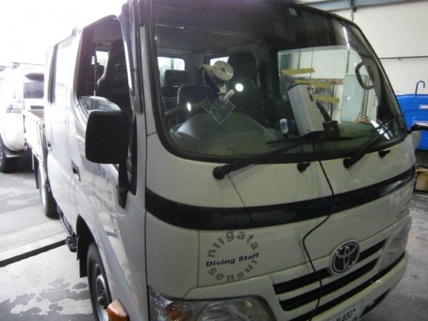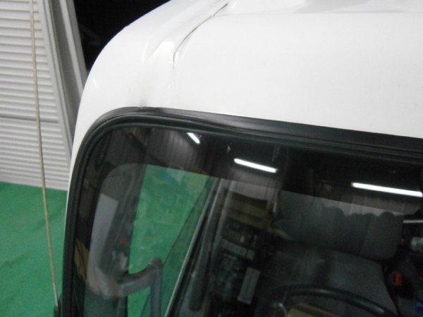 いつもお世話になってる業者さんの積載車、飛び石でヒビ割れしてしまいました