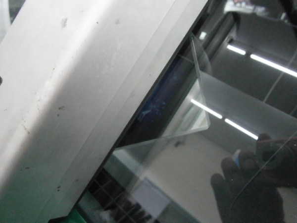 ガラスの接着剤を剥がし割れているガラスを外します。