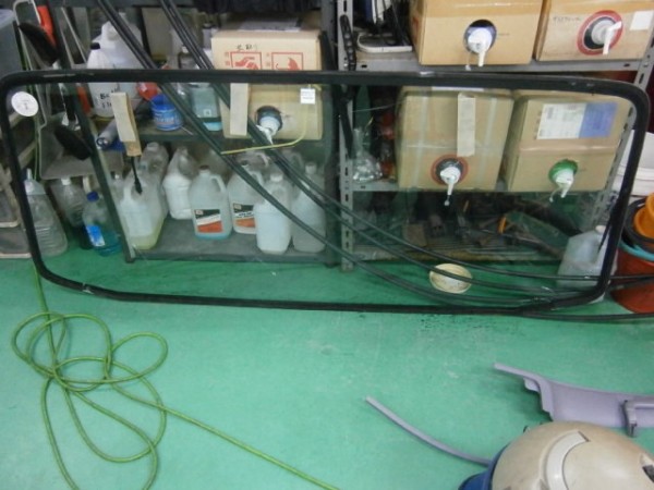 とりあえず、濡れないようにして工場へ入れて乾燥させ、ガラスを外します