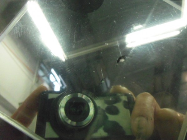 見えにくいですがスターブレイク状のヒビ割れ