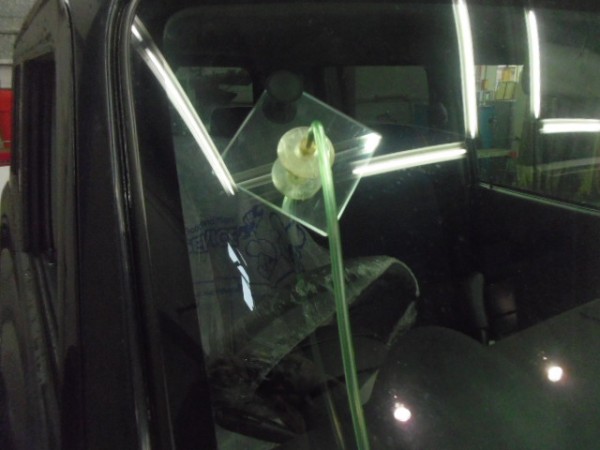 助手席側リアドアのガラスに深いキズが入り新品交換します