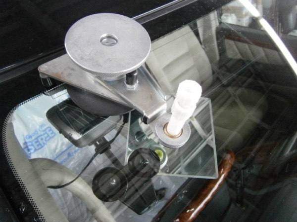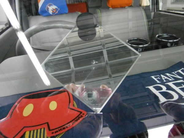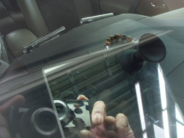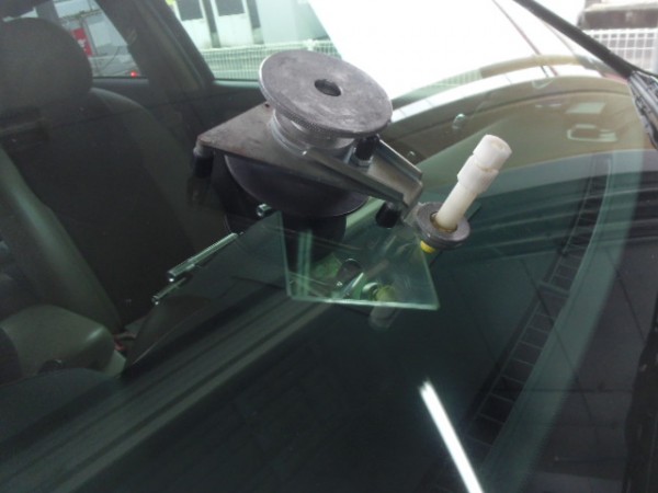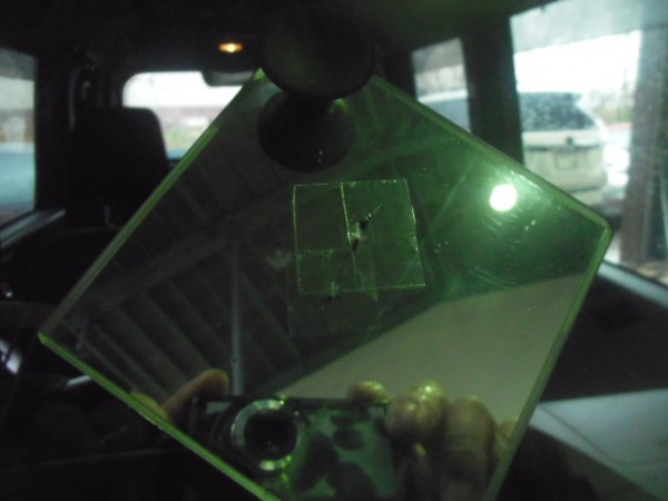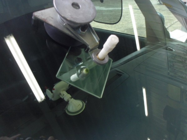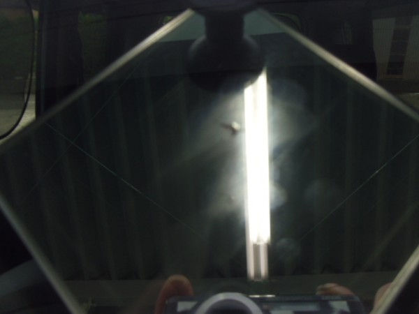 運転席上のレーダーの黒い吸盤の横にブルズアイ状のヒビ割れ