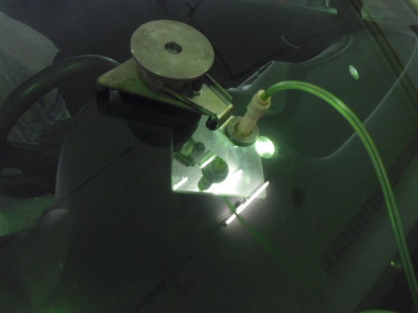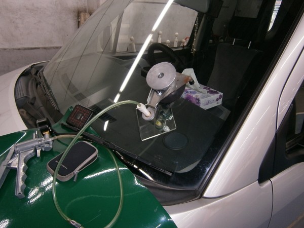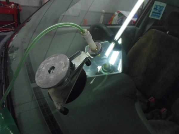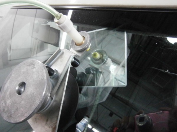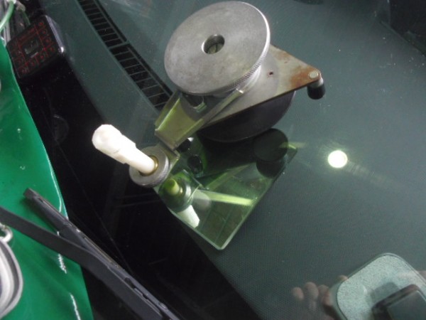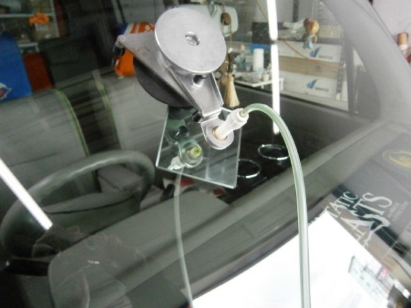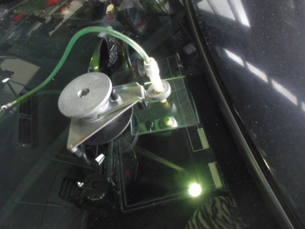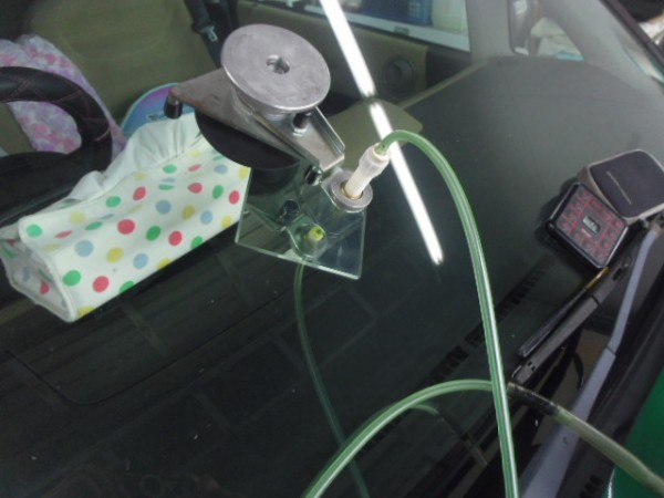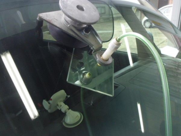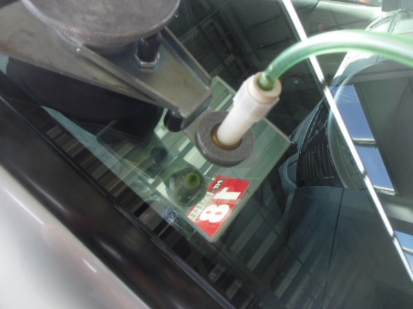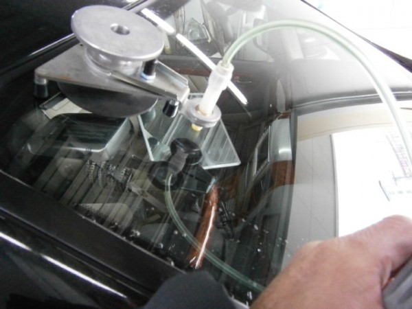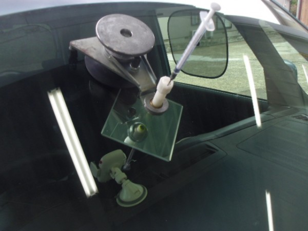 ガラス専用接着剤を注入してヒビを伸ばさない様に加圧します